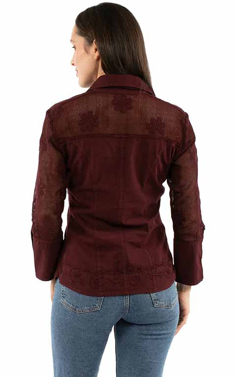 Style #PSL-274-Womens Embroidered Blouse with Mesh Sleeves-Cantina-Scully Cantina collection blouse. This blouse is made in 100% peruvian cotton and is embellished with embroidery on the front of blouse and all...